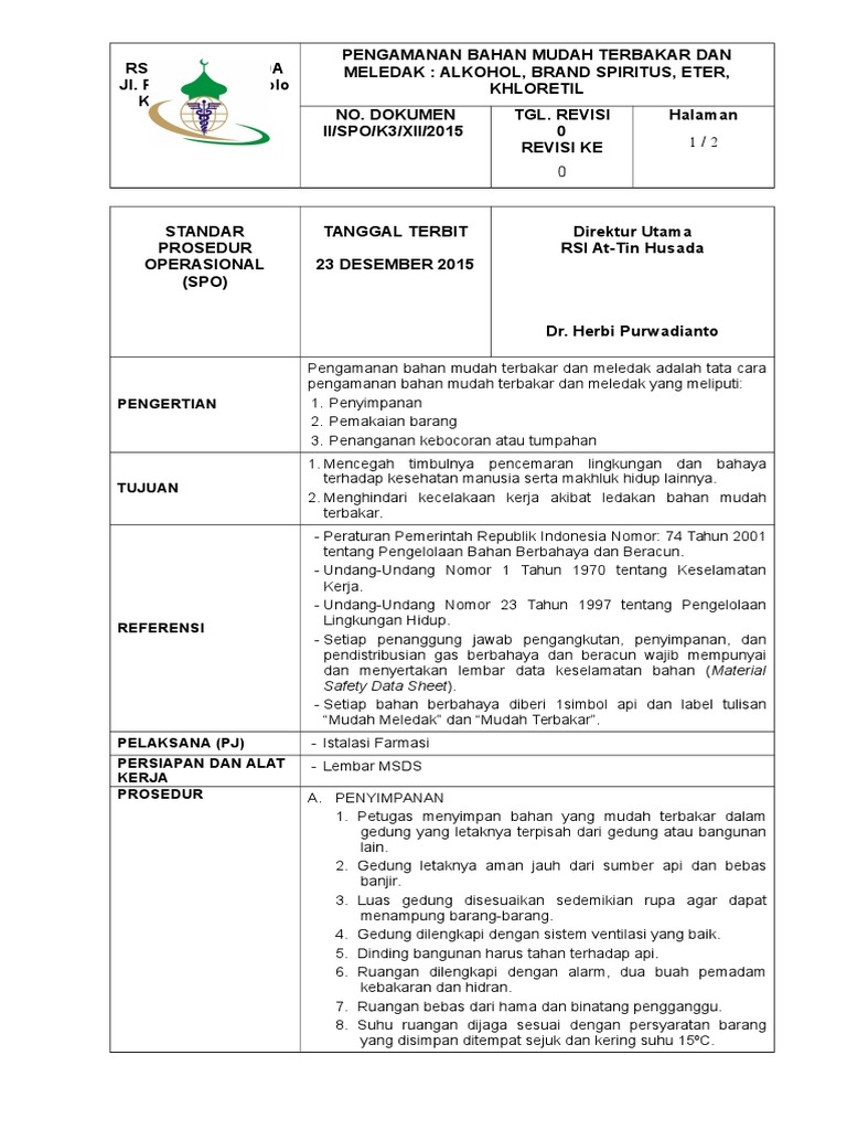 45 Sop Pengamanan Bahan Mudah Terbakar Dan Meledak Pdf